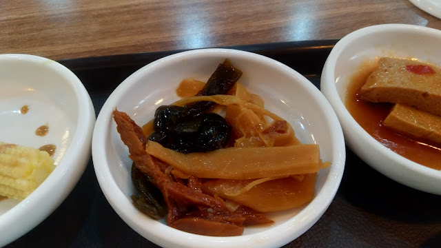 店家提供個各式小菜,從一開始有自助區大家一直搶食到後來採