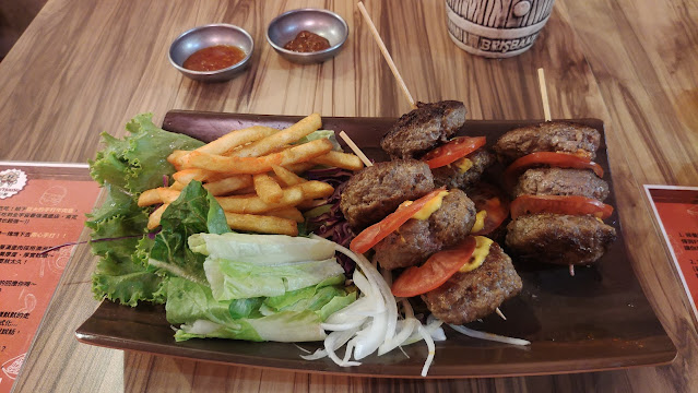 種肉類漢堡吃到飽,肉排都以一串三塊的方式出餐,不過當天的