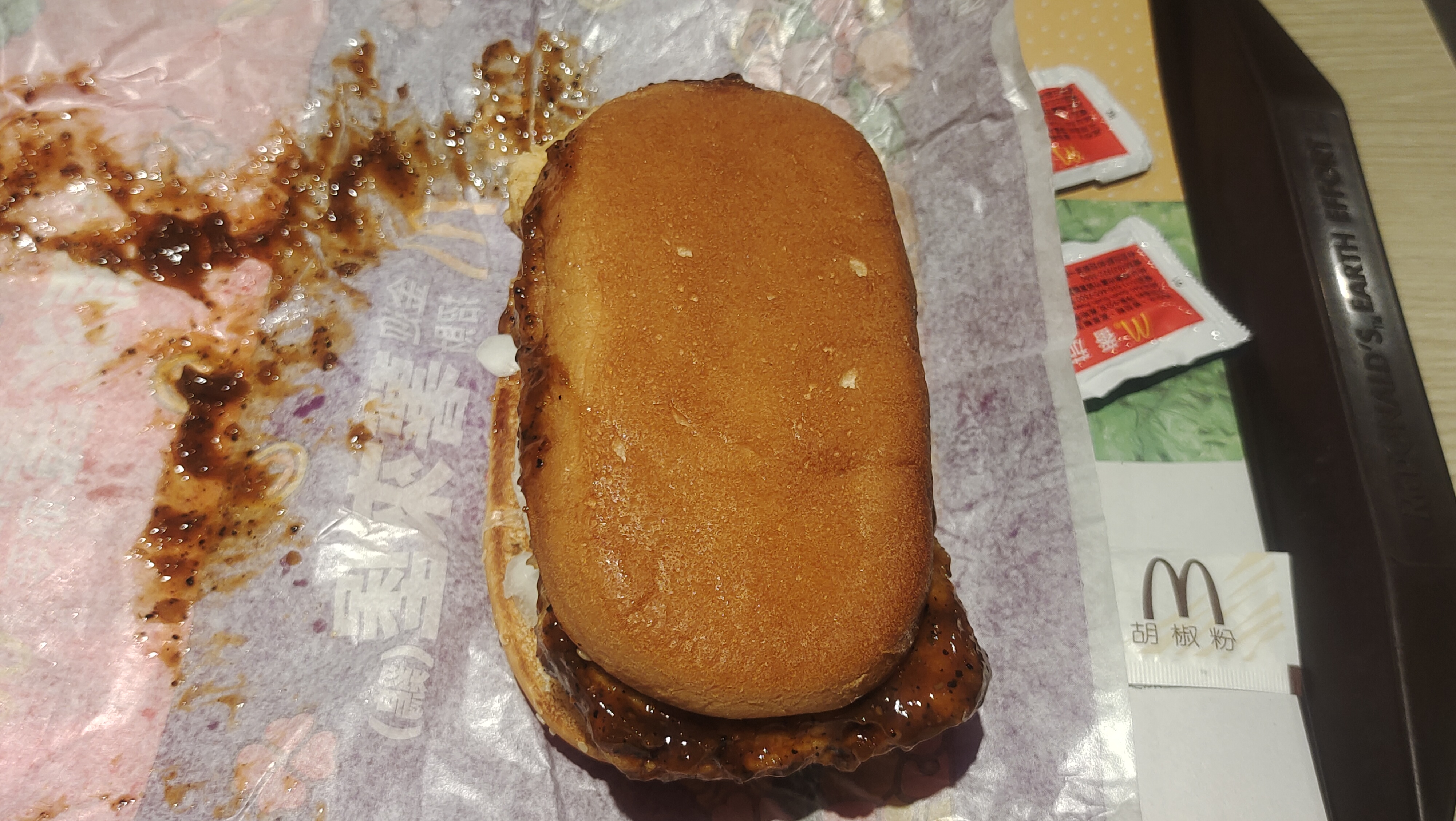 來的口感因為薯餅與雞肉排都蠻有厚實感的,加上加量洋蔥的嗆